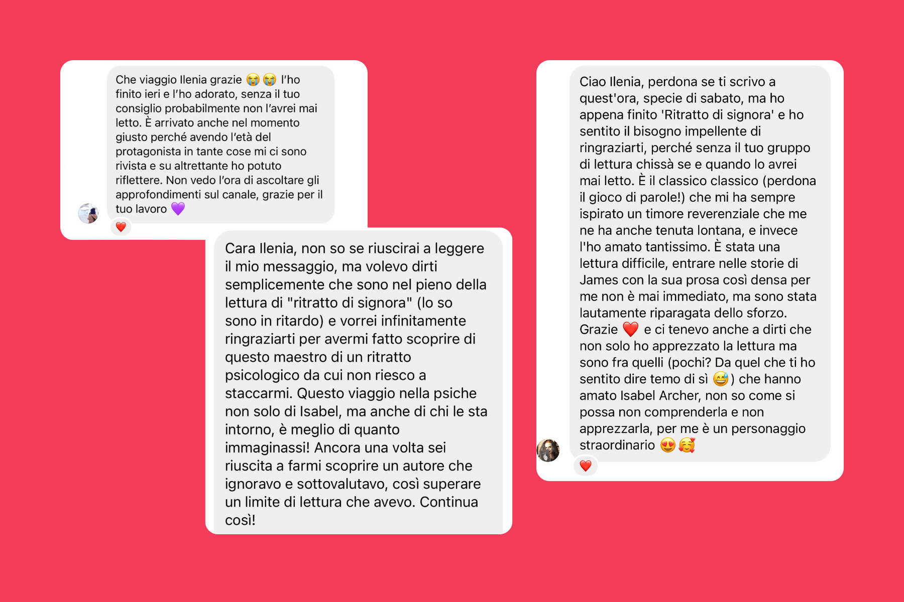 La lettura di libri decisamente poco adatti alla frenesia del presente – come il mattone americano Ritratto di signora – è un allenamento continuo alla sorpresa. Non dovrebbe piacerci ciò che è distante da noi, salvo scoprire che i secoli addietro non sono poi così distanti da noi. La più grande soddisfazione nel tenere un gruppo di lettura sui classici è proprio quella di sentirsi dire: “Non lo avrei mai letto da sola e mi sarei persa un tesoro”.
